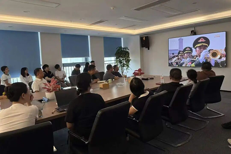 员工们聚集到公司会议室,等待阅兵开始。看到威武的阅兵方阵、先进的武器装备、受阅官兵铿锵的步伐,员工们为之热血沸腾,激动之情溢于言表。不仅充分感受伟大抗战精神,更激发了爱国热情和工作动力。员工们纷纷表示,将以更饱满的热情、更严谨的态度投入岗位,为公司的发展和国家的繁荣注入红色动能。